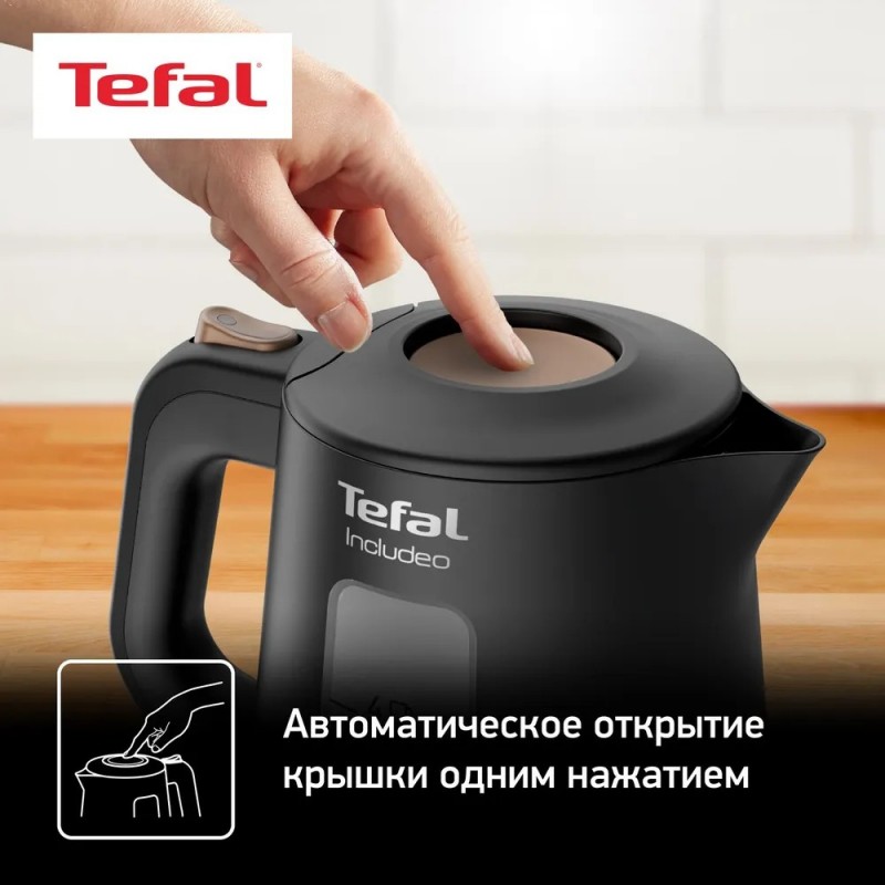 Линейка Tefal Includeo разработана нашими дизайнерами совместно с покупателями, благодаря чему она удовлетворит потребности каждого. Электрический чайник с эргономичным и удобным дизайном оснащен простыми и полезными функциями: легкое открытие крышки нажатием большой кнопки, кнопка включения/выключения с подсветкой, два больших индикатора уровня воды в литрах или чашках, а также основанием с поворотом на 360 градусов для удобного размещения. Идеально подходит для приятного и легкого ежедневного использования.